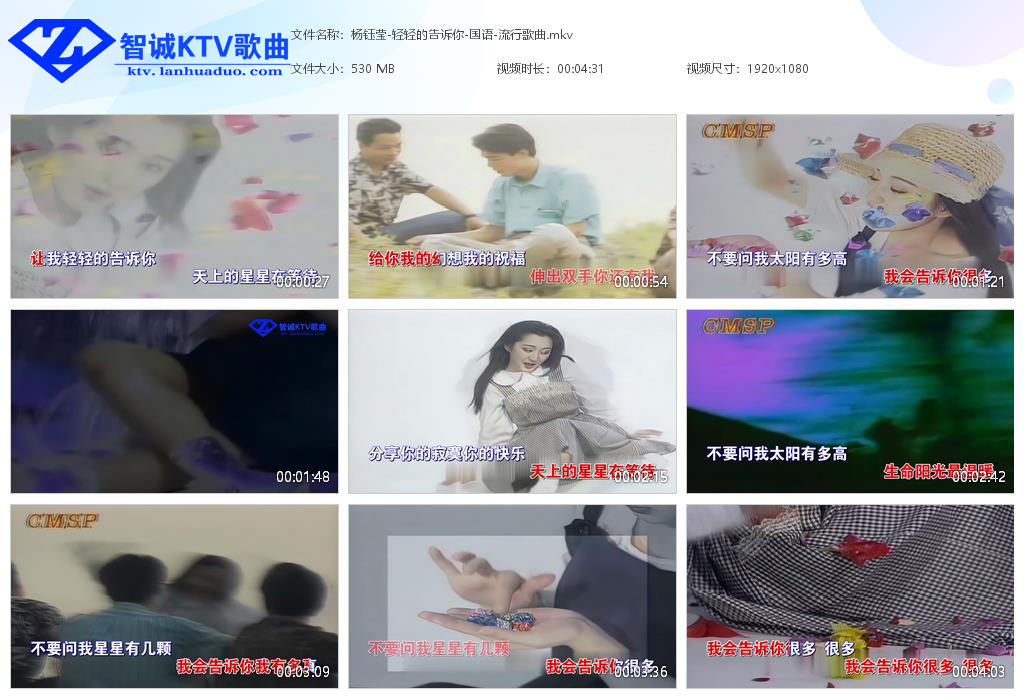 智享歌城 华语歌曲 杨钰莹 – 轻轻的告诉你 https://ktv.lanhuaduo.com/archives/2631