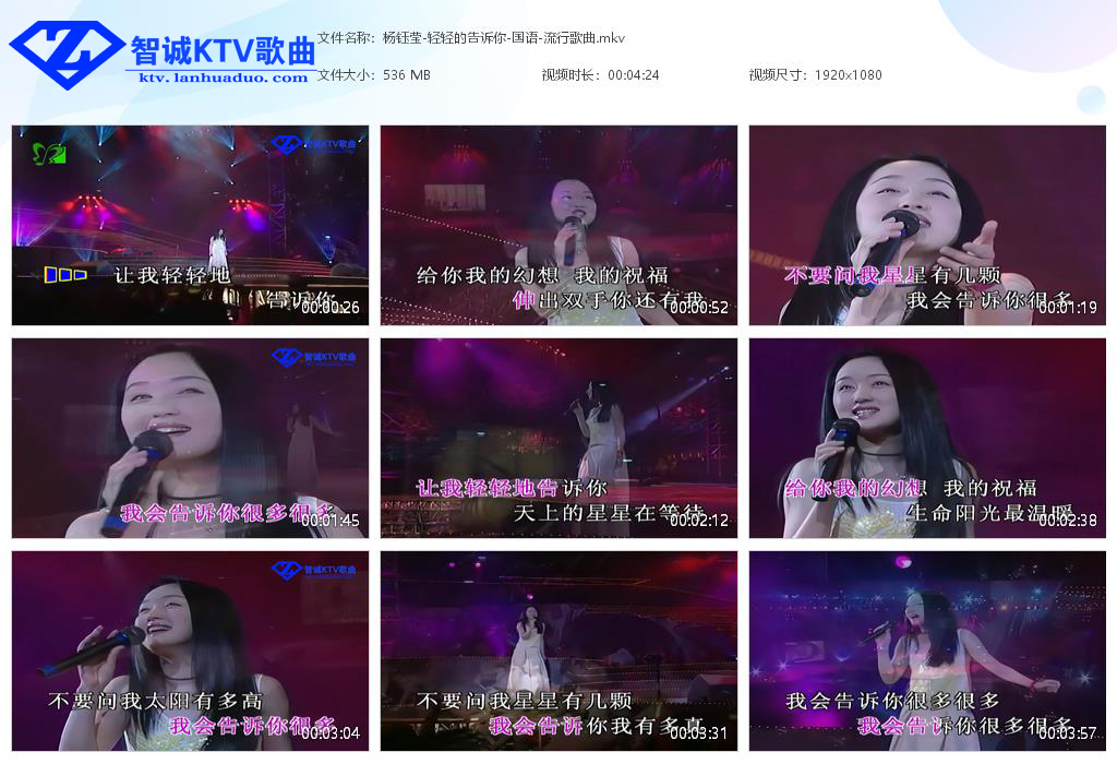 智享歌城 演唱会版 杨钰莹-轻轻的告诉你(演唱会) https://ktv.lanhuaduo.com/archives/2639