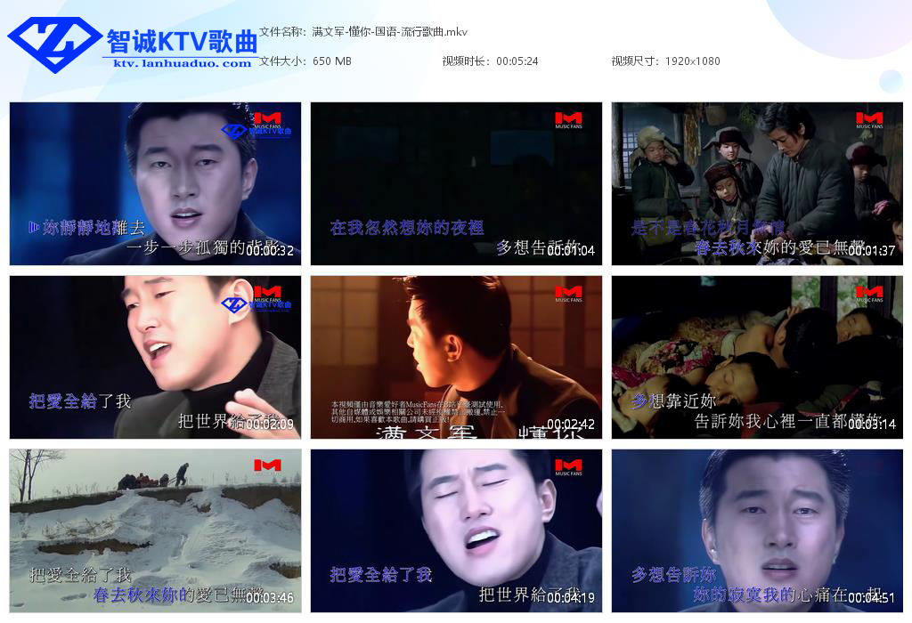 智享歌城 华语歌曲 满文军-懂你 https://ktv.lanhuaduo.com/archives/3043