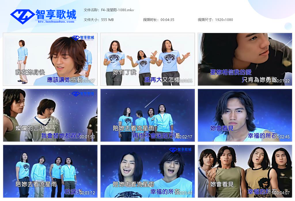 智享歌城 华语歌曲 F4-流星雨 https://ktv.lanhuaduo.com/archives/3807